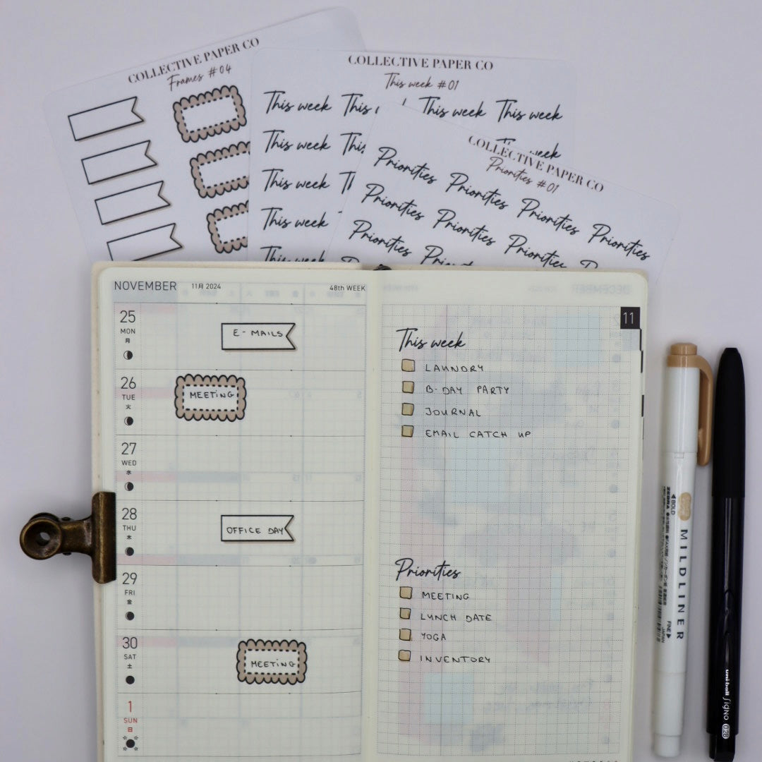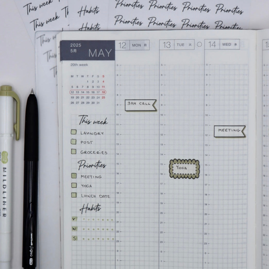 Elevate your planning with Functional headers - use them to plan out your daily or weekly plans. These stickers deliver the functional design and durability without any bulk in your planner.