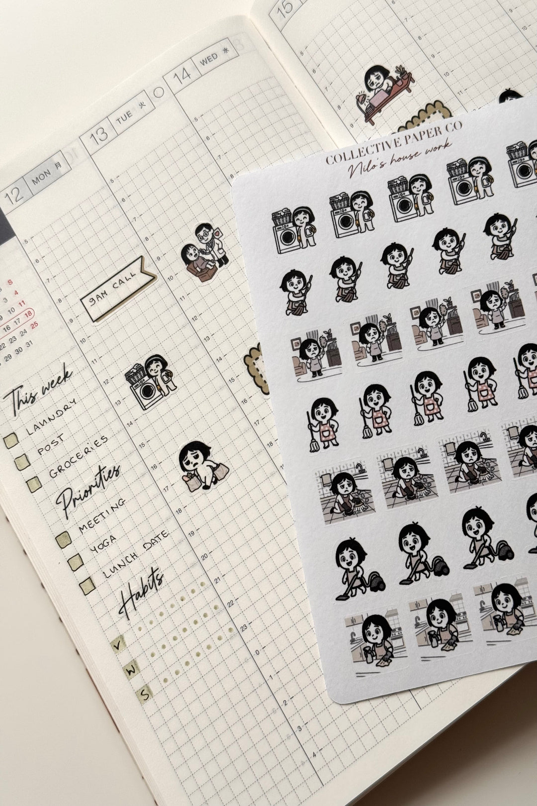 From tidying to deep cleaning, Nilo’s house work turns chores into moments worth noting. Ideal for functional planners that still value personality.