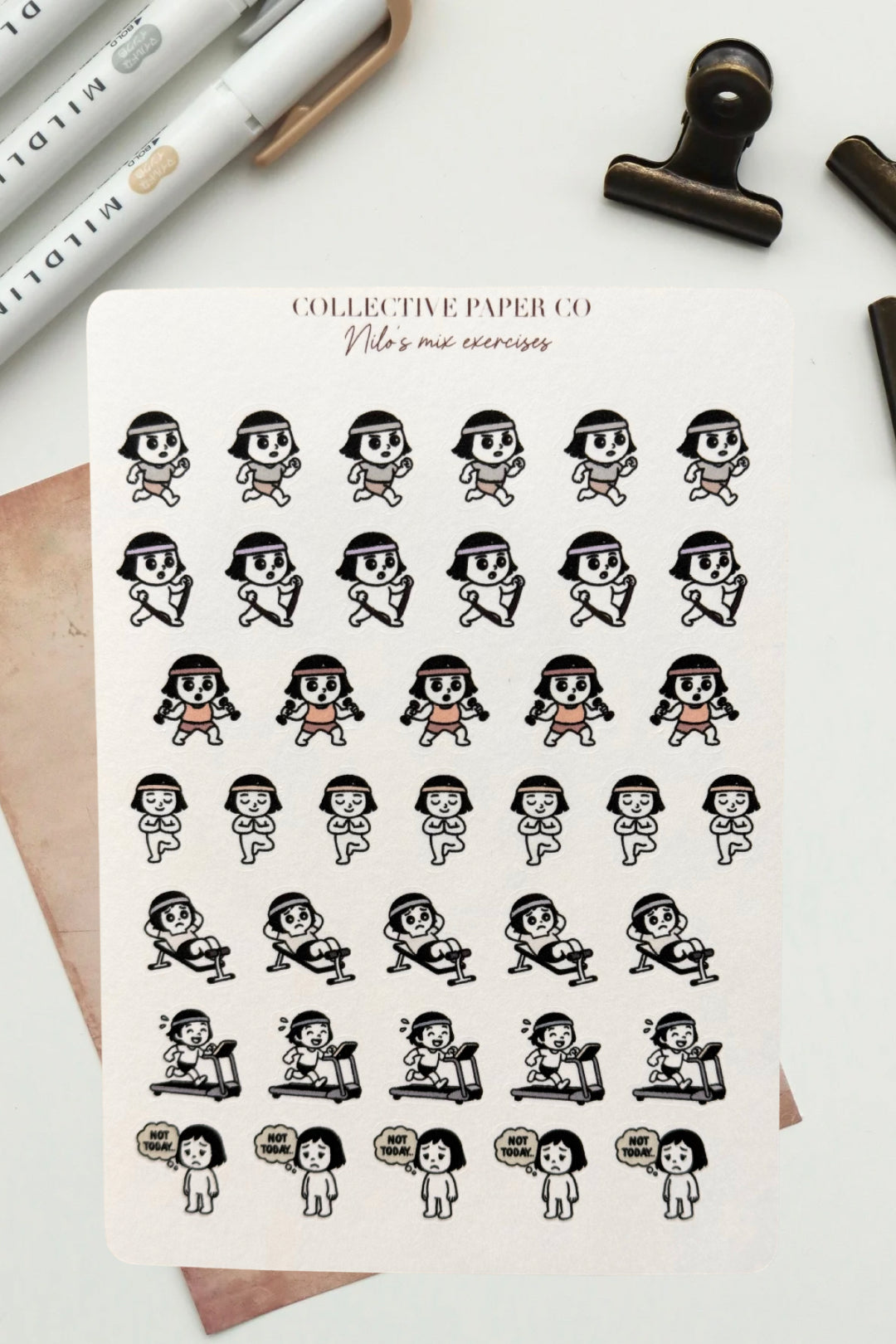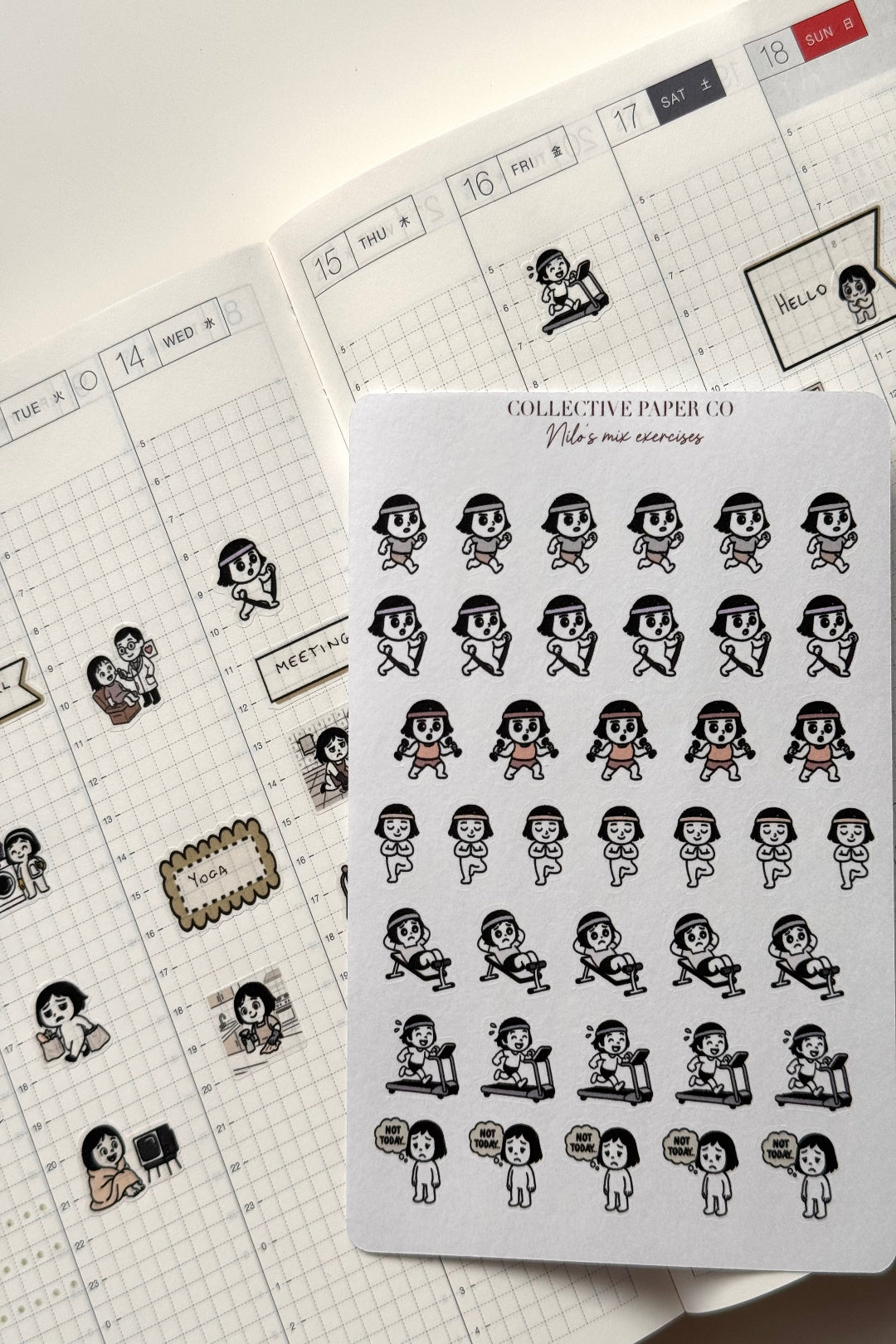 Movement and balance are gently represented in Nilo’s mix exercises, celebrating all forms of staying active. Perfect for wellness spreads, habit tracking, and flexible routines.
